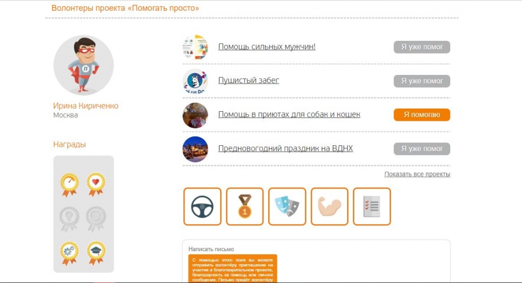 При регистрации можно указать, чем вы можете быть полезны. Например, вы умеете водить машину, провести спортивное мероприятие, творческий мастер-класс или вовсе организовать событие. Затем на почту вам придет письмо с уведомлением. После этого нужно зайти на сайт, используя вашу почту вместо логина.