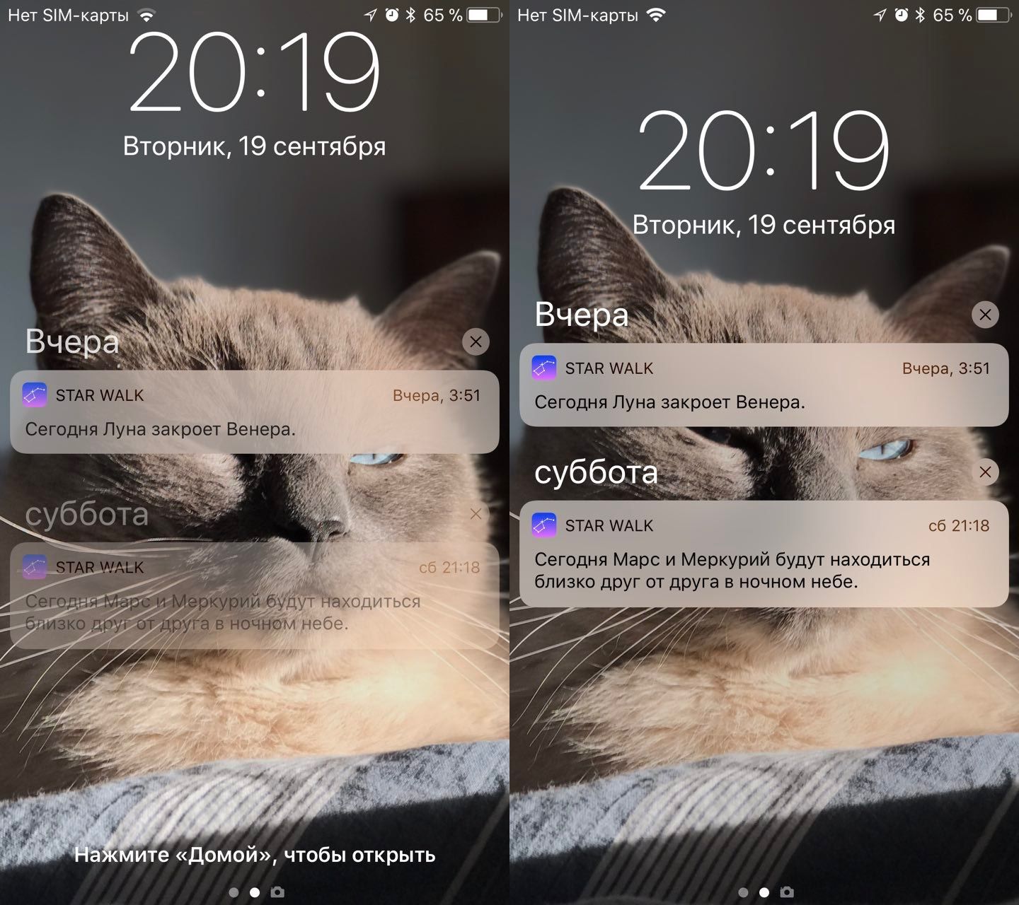 На самом экране блокировки отображаются только уведомления, которые появились после последнего входа в айфон. Но если провести там пальцем сверху вниз, появятся и более старые.