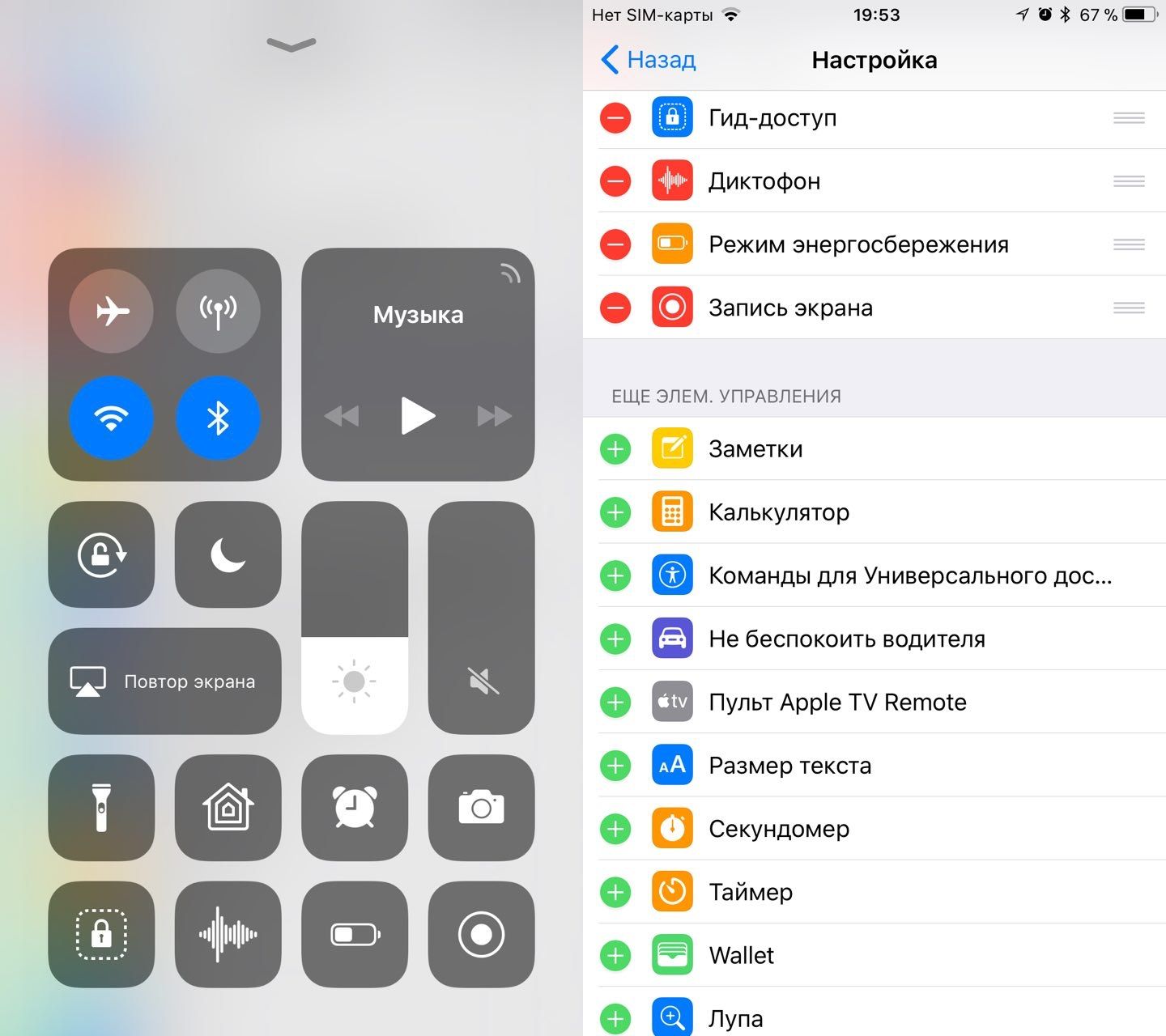 С новым пунктом управления есть проблема: часть функций Apple спрятала внутрь других. Например, чтобы найти Night Shift, надо зажать палец на слайдере яркости экрана; AirDrop и режим модема прячутся за долгим нажатием на панель с авиарежимом и Wi-Fi. При этом часть кнопок дополнительных функций не имеет — и вам придется самим выяснять, к какой категории относится тот или иной пункт меню.