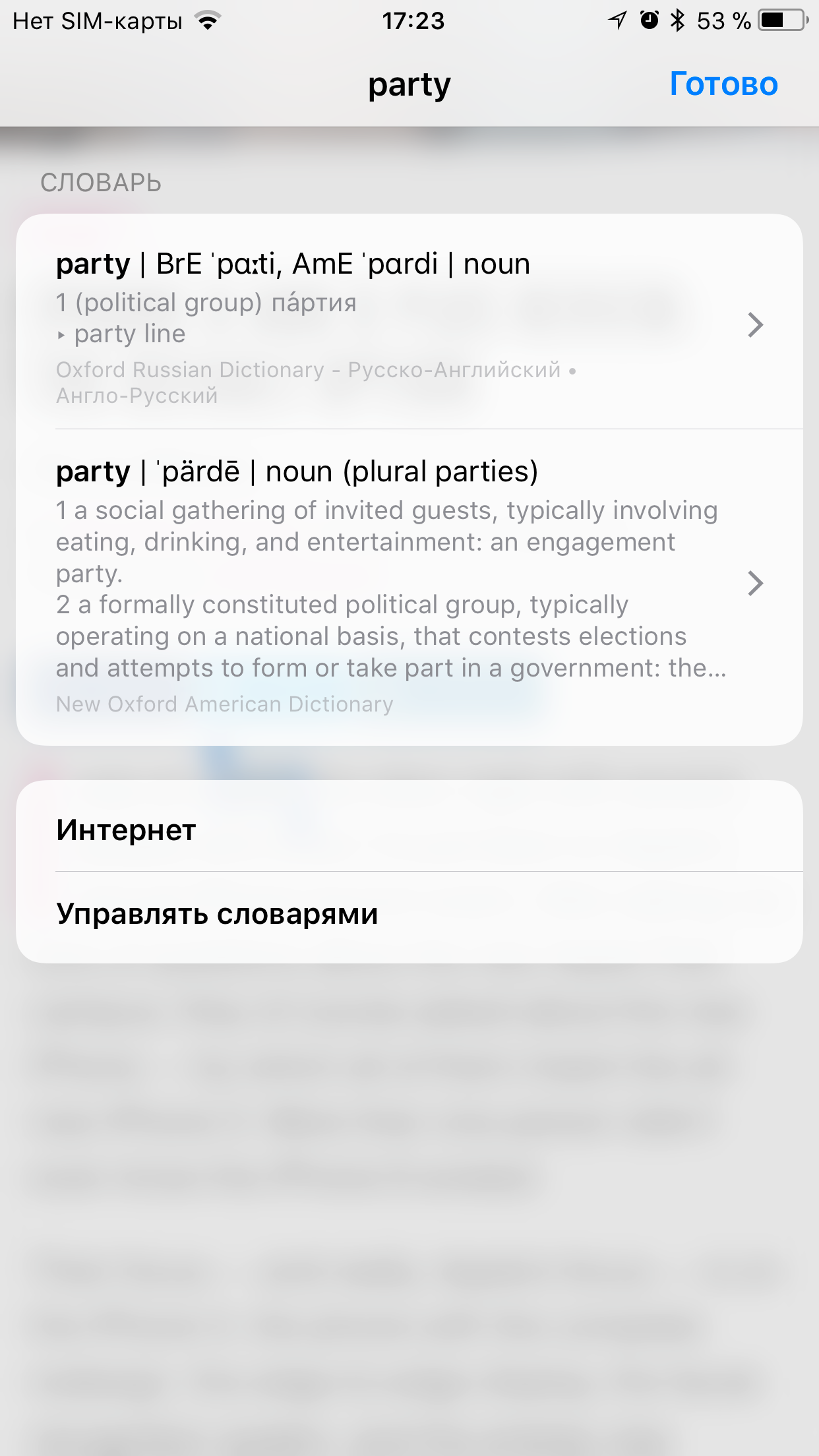 В новой iOS появился англо-русский словарь. Если при чтении текста выделить незнакомое слово и нажать «Найти», появится его перевод.