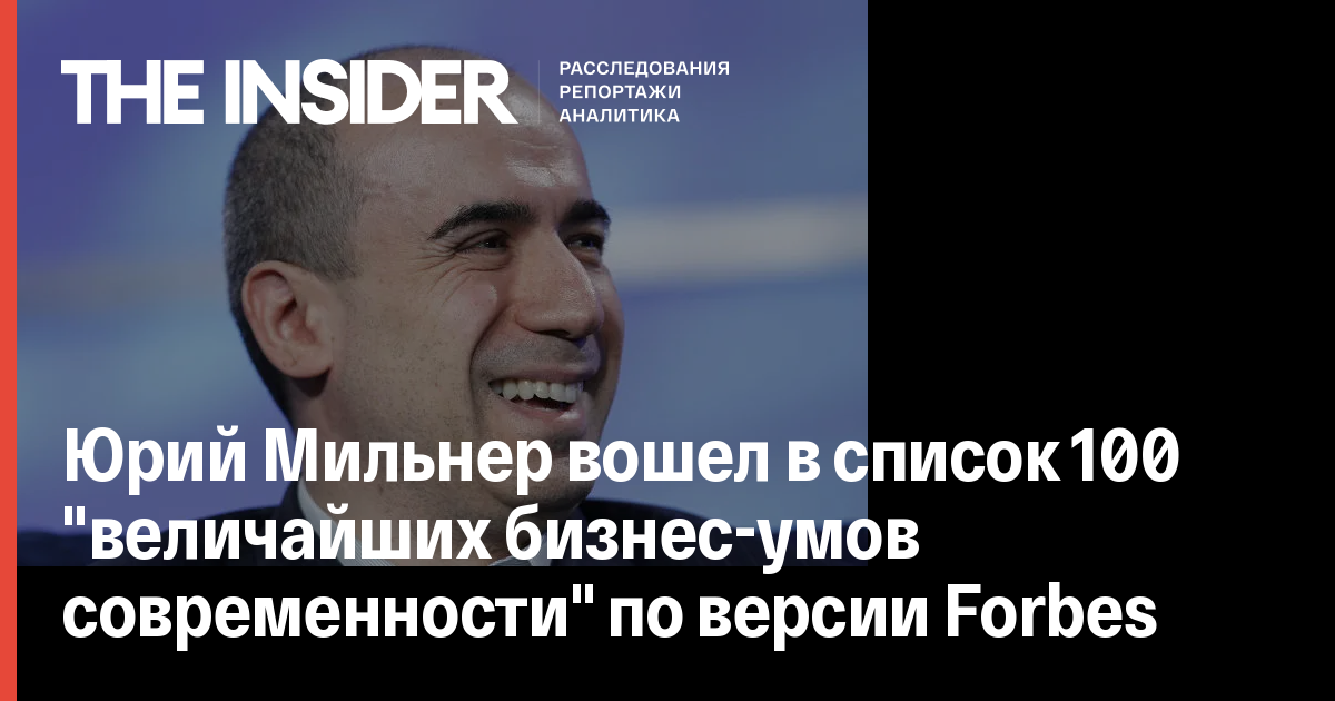 Cооснователь Mail.Ru Group и создатель инвестфонда DST Global Юрий Мильнер вошел в список 100 «величайших бизнес-умов современности» по версии американского Forbes. Мильнер стал единственным гражданином России, вошедшим в этот список.