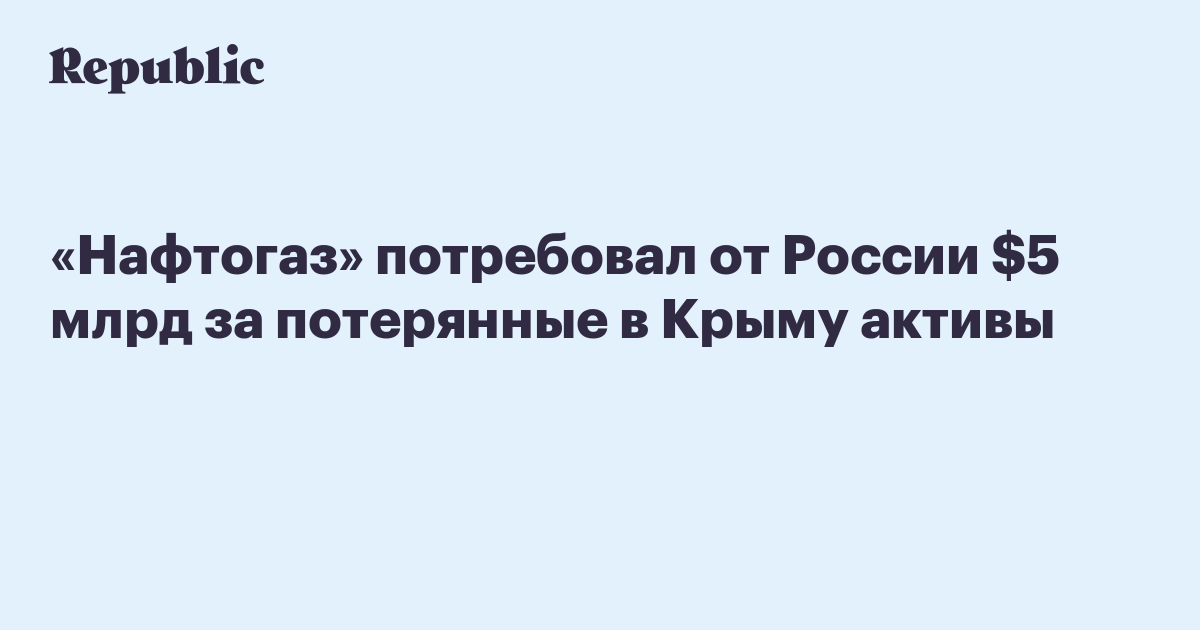«Нафтогаз Украины» подал к России новый иск в суд Гааги, потребовав $5 млрд за утраченные в Крыму активы. Об этом сообщает издание Liga.net.