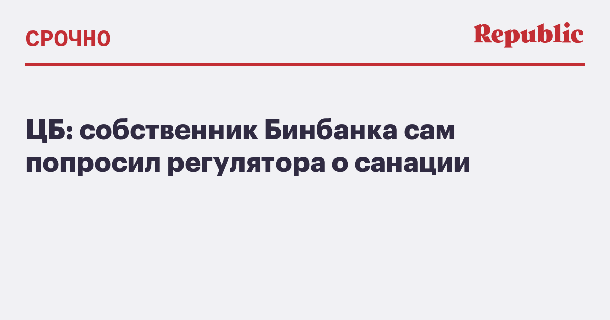 Собственник Бинбанка обратился в ЦБ с просьбой о санации. Об этом заявили в пресс-службе регулятора, передает «Интерфакс».