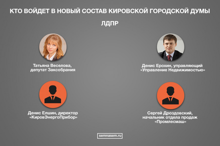Большинство мест на выборах получила «Единая Россия» — 23 мандата из 36. Из них семеро прошли по партийному списку, остальные 16 — по одномандатным округам. Единороссы определились, кого выдвинут на пост главы города: экс-министра финансов Кировской области Елену Ковалёву (она была уволена из правительства) и первого замруководителя регионального исполкома партии Романа Зяблых.