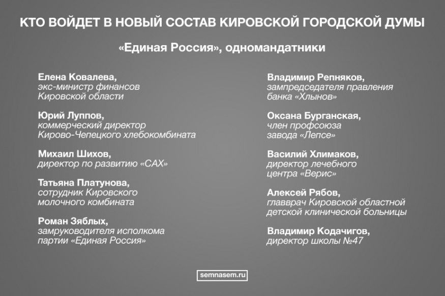 Кто вошел в новый состав Кировской городской думы. Карточки «7x7»