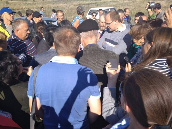 За день до этого эпизода противники инвестпроекта провели сход в селе Ясашная Ташла, где заявили, что в ответ на заявление Морозова «Заводу — быть!» они превращают экологический протест в политический и выдвигают ультиматум: или губернатор отказывается от инвестпроекта, или люди потребуют его отставки.
