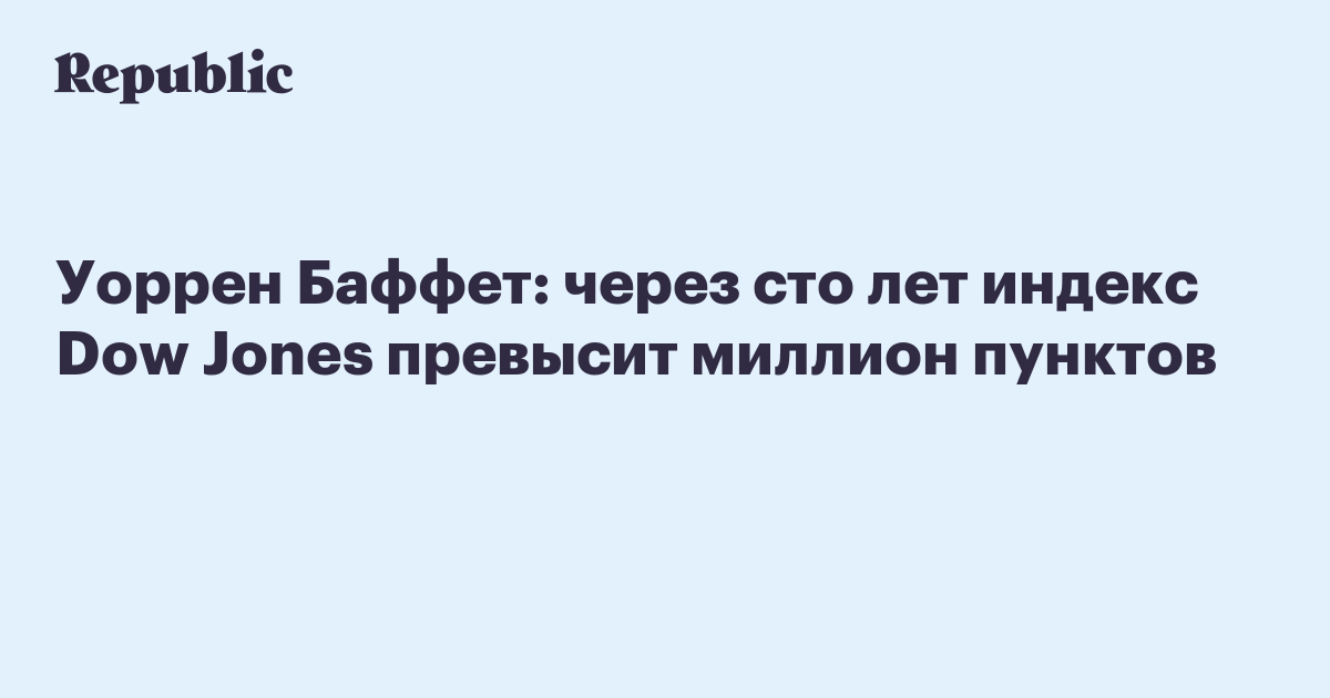 Уоррен Баффет: через сто лет индекс Dow Jones превысит миллион пунктов