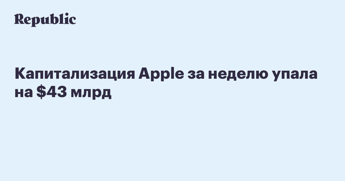 Стоимость акций Apple с 18 сентября упала на 5,2%. Капитализация, таким образом, сократилась на $43 млрд. Об этом свидетельствуют данные биржи NASDAQ, пишет Financial Times.