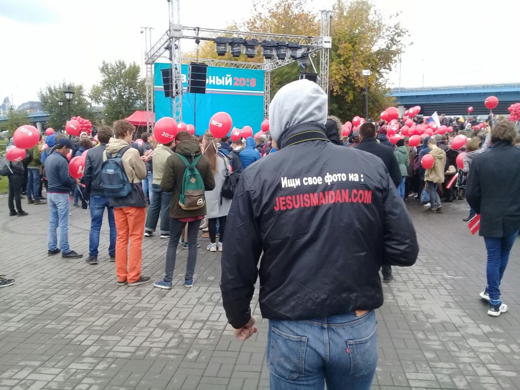 По набережной ходят люди в куртках Je suis maidan и снимают участников. Ранее предупреждения об «опознании» и обнародовании личностей пришедших на митинг от имени этой группы были растиражированы в интернете. Один из таких «фотографов» признался Тайге.инфо, что специально приехал из Санкт-Петербурга.