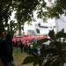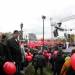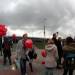 Пока полиция усердно проверяла сумки и простукивала каждого молодого человека, на опору первого железнодорожного моста через Обь (сохранена как памятник) забрался парень в маске. Он сидел там и не реагировал на требования полиции слезть.