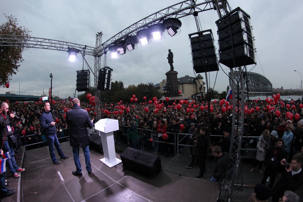 Затем на сцену поднялся представитель «Единой России» из Дзержинского районного отделения и представился Сергеем. Он сначала спросил, на какие деньги организован новосибирский митинг. Навальный ответил, что средства перечисляют избиратели, а на кампанию уже потрачено более 90 млн рублей. Политик, в свою очередь, спросил, за счет чего «ЕР» проводит свои.