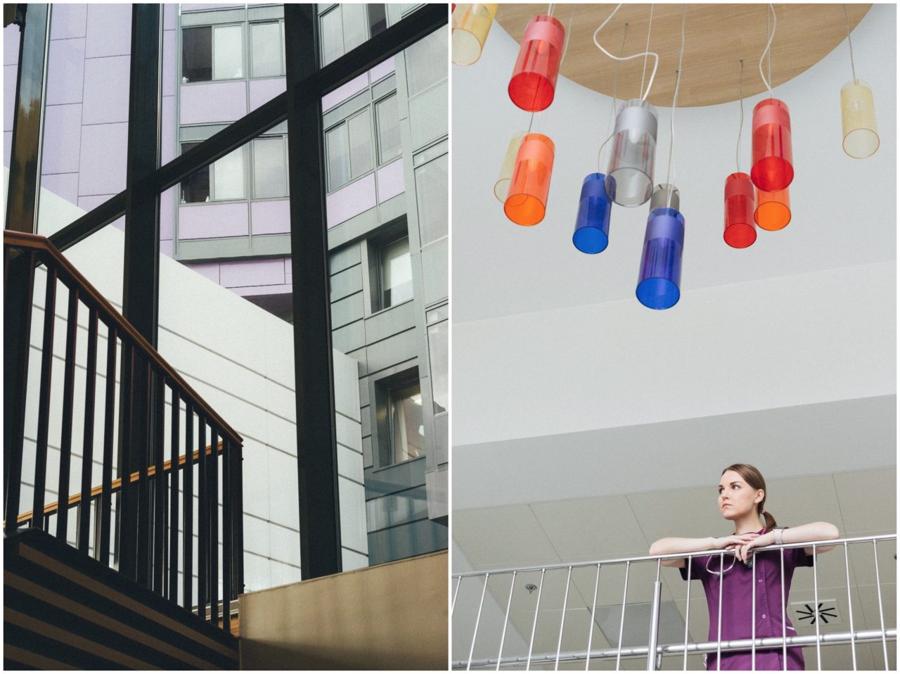 Вечером в больнице тихо и пусто, только мамы с колясками стоят у дверей внизу. Дети все в шапочках — не потому, что холодно, а потому, что после курсов химиотерапии волосы выпадают —и приходится прятать лысую голову.