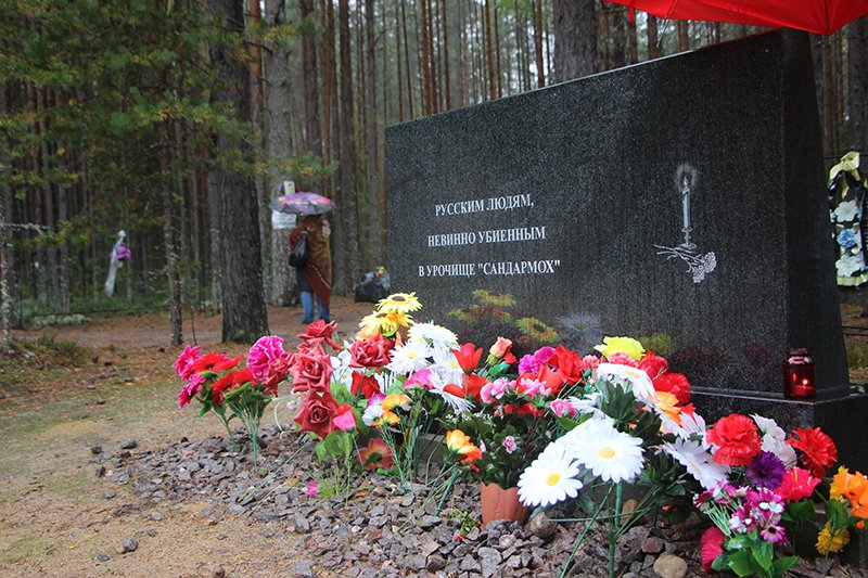 Сандармох стал одним из самых больших на Северо-Западе захоронений жертв массовых расстрелов Большого террора. По архивным данным, за четырнадцать месяцев здесь расстреляли три с половиной тысячи жителей Карелии, около трёх тысяч заключенных Беломорско-Балтийского комбината, тысячу сто одиннадцать заключённых Соловецкого лагеря особого назначения — так называемый «Большой Соловецкий этап». В Сандармохе захоронены представители более шестидесяти национальностей: две тысячи сто пятьдесят четыре русских, семьсот шестьдесят два финна, шестьсот семьдесят шесть карелов, четыреста девяносто три украинца, двести двенадцать поляков, сто восемьдесят четыре немца, восемьдесят девять белорусов.