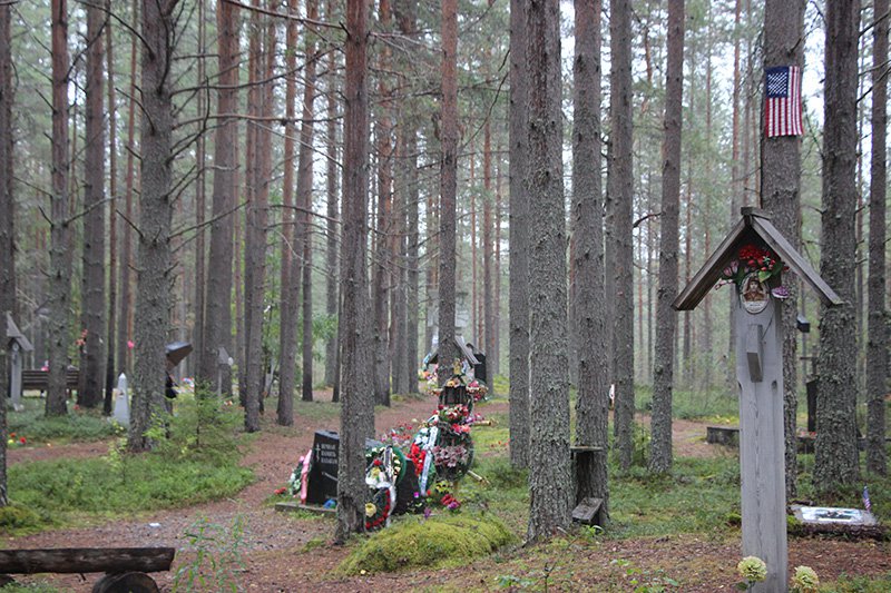 Именно Михайлин организовал эту поездку. Сам он несколько раз бывал в экспедициях с Дмитриевым на Соловках, но в этом месте не был ни разу, да и мало кто решится сейчас на такое путешествие. Тем удивительнее, что ребята не пожалели времени, денег, стёртых ног — и приехали в Карелию, чтобы попасть именно на это кладбище. У самих киношкольников, кажется, условия экспедиции особого удивления не вызывают. Они к ней подготовились.