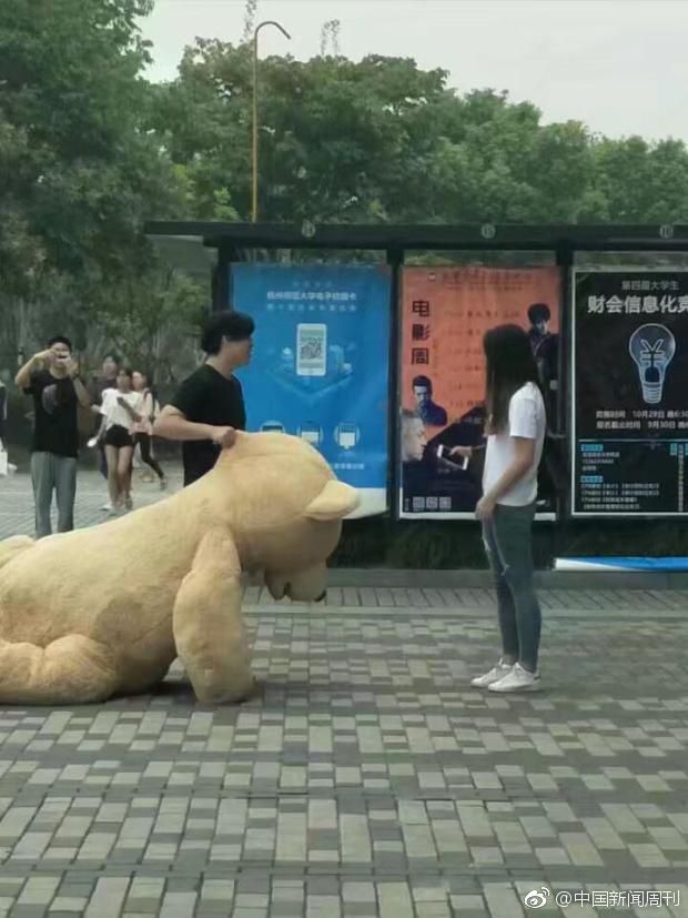 Богатый китаец подарил девушке двухметрового плюшевого мишку. Но она все равно его отвергла