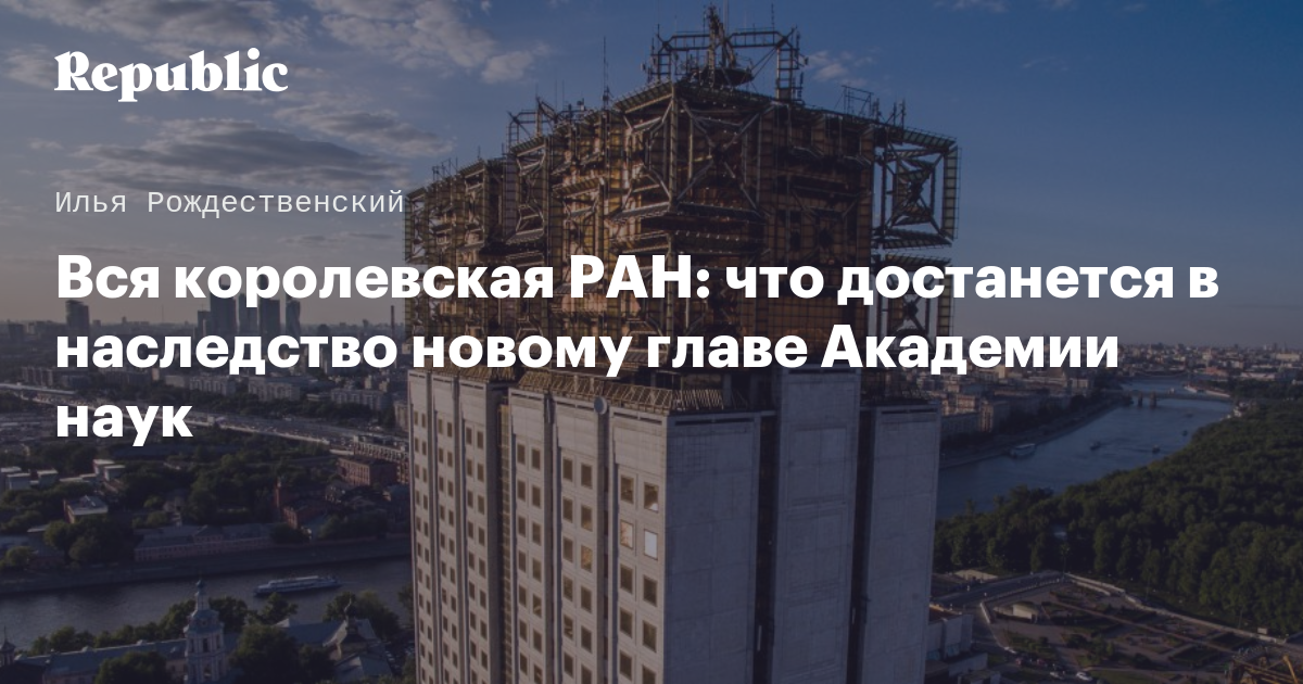 Новый руководитель РАН получит под свое управление структуру, которая хоть и утратила часть функций, но все же продолжает распоряжаться немалой частью бюджетных средств и объединяет под своей крышей свыше двух тысяч академиков и членов-корреспондентов и сотни научных организаций. Republic коротко объясняет, что стоит на кону.