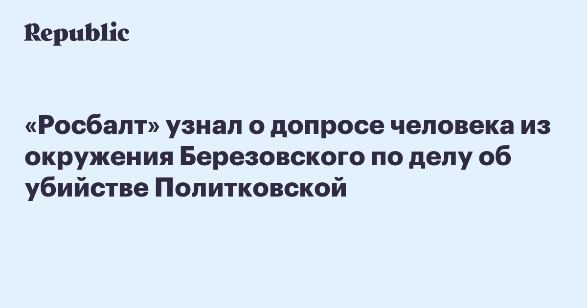 «Росбалт» узнал о допросе человека из окружения Березовского по делу об убийстве Политковской