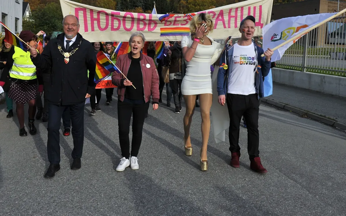 — Я редко цитирую нашего короля, но сейчас сделаю это. Наш король сказал: «Норвежцы — это парни, которые любят парней, девушки, которые любят девушек, и парни, и девушки, которые любят друг друга», — говорит мэр Киркенеса Руне Рафаэльсен, открывая прайд.