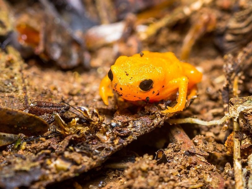 Такая особенность отличает виды Brachycephalus ephippium и Brachycephalus pitanga, относящиеся к роду короткоголовов. Представители обоих видов – маленькие лягушки, длиной не более 1,5 сантиметров, ярко-желтой окраски. Обитают они в лесной подстилке. Биологи проигрывали записи пения самцов перед самками в лесу, но не отмечали никакой реакции. Проверка в лаборатории подтвердила, что лягушки не слышат эти звуки. Анатомическое исследование показало, что органы слуха у этих видов вообще развиты очень слабо.