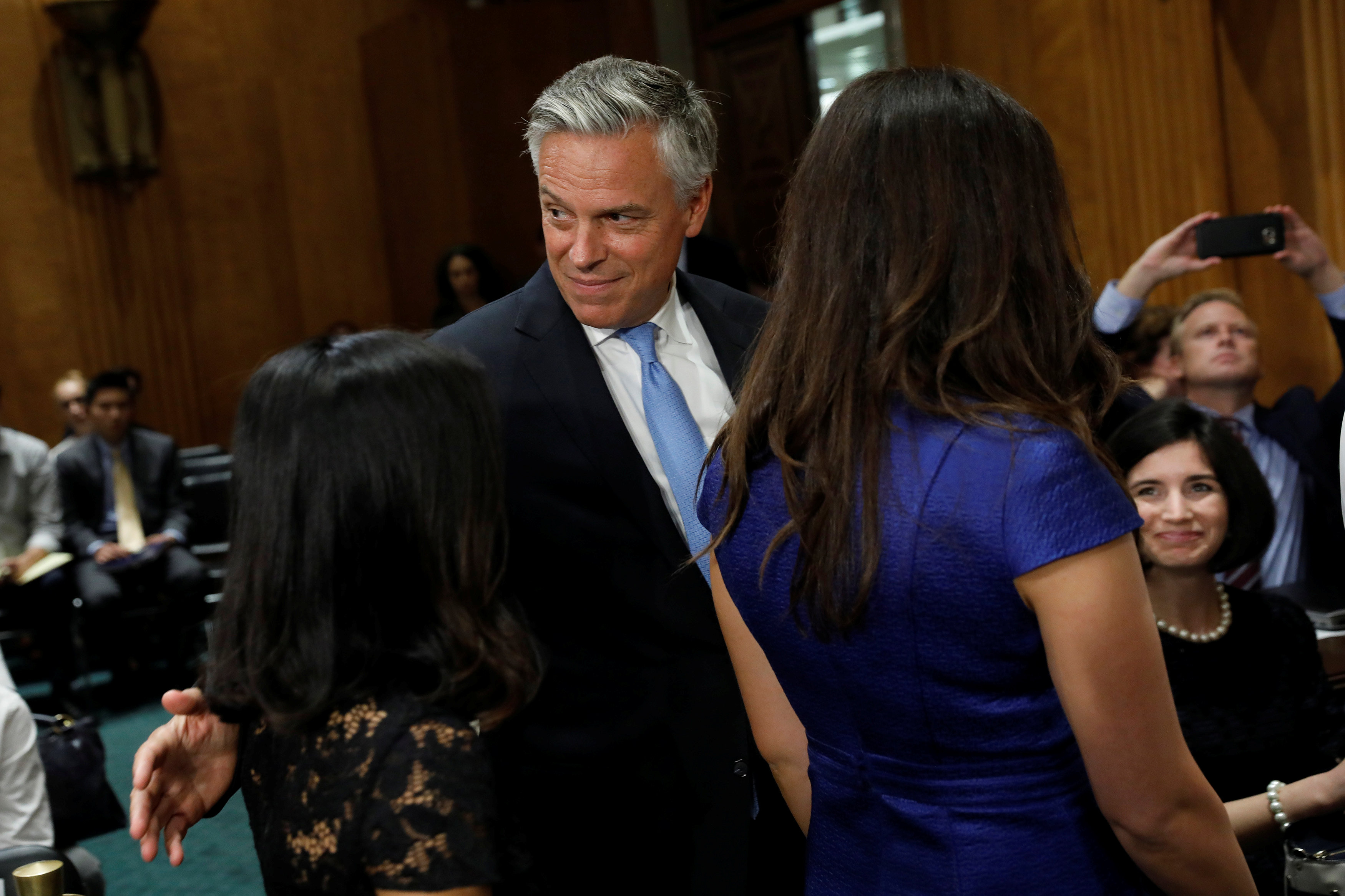 Республиканец Джон Хантсман, в прошлом губернатор Юты и посол США в КНР, заявил во время слушаний, что он без колебаний будет напоминать российским официальным лицам, что российское правительство несет ответственность за свои действия, в частности, за вмешательство в американские президентские выборы. Кандидат в послы также заверил сенаторов, встревоженных заявлениями Дональда Трампа о готовности сотрудничать с Владимиром Путиным, о намерении в роли посла расширять контакты с россиянами с целью поддерживать "обмен мыслями и идеями".