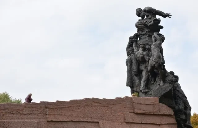 Мы у юго-восточного рва. Жужжит газонокосилка. Сквозь кроны просвечивает главный, советской поры, монумент: мускулистые торсы борцов, так не похожих на Дину Левину. За годы независимости на территории прибавилось десятка три отдельных знаков памяти: еврейская менора, кибитка ромов, крест на месте казни украинских националистов, камень на месте казни подпольщиков, на месте казни военнопленных, на месте казни душевнобольных из Кирилловской лечебницы… Сколько жертв принял Бабий Яр за годы оккупации, 100 000, как считают, или гораздо больше, уже не узнать никогда.