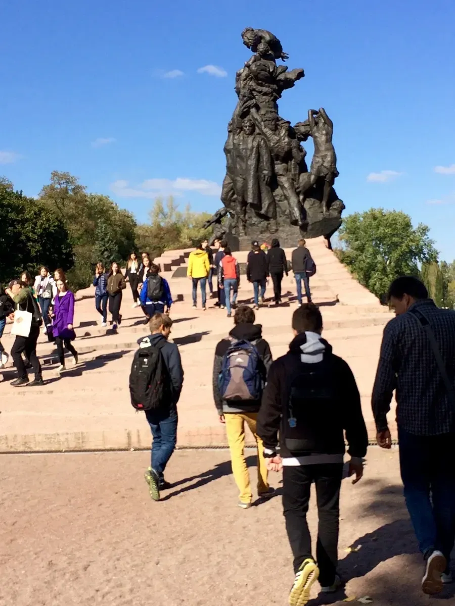 Ребята вежливо молчат. Это очень воспитанные старшеклассники частной гимназии «Афины», будущая бизнес-элита страны. В других сферах они также продвинуты: записались на интерактивную образовательную экскурсию «IWalk — Бабий Яр» по методике «равный — равному», которую придумали в Киевском образовательном Центре «Пространство толерантности». В роли гидов выступают первокурсники Киево-Могилянской академии. Но тема тяжела даже для академиков. Группы, по желанию самих школьников, сформировали раздельные, девичью и мальчишескую. Я примкнула ко второй.