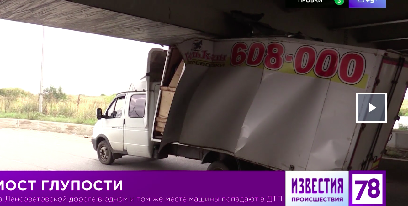 Канал 78.ru снял сюжет о «мосте глупости» — так, по данным журналистов телеканала, называют мост местные жители. «Чтобы снять очередную нелепую аварию, нужно просто набраться терпения», — сказал корреспондент. И действительно, «газель» врезалась в мост во время съемок сюжета.