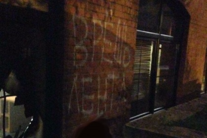 Неизвестные напали на здание редакции «Ленты.ру» и написали на стене «Врешь Лента»