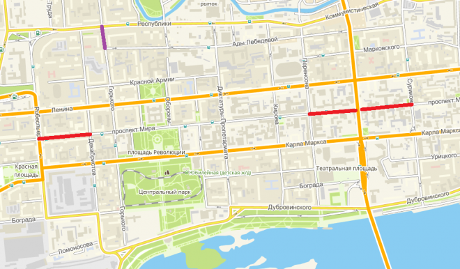 Напомним, движение транспорта там сейчас ограничено на участках от ул. Робеспьера до ул. Декабристов, от ул. Перенсона до ул. Вейнбаума и от ул. Вейнбаума до ул. Сурикова.