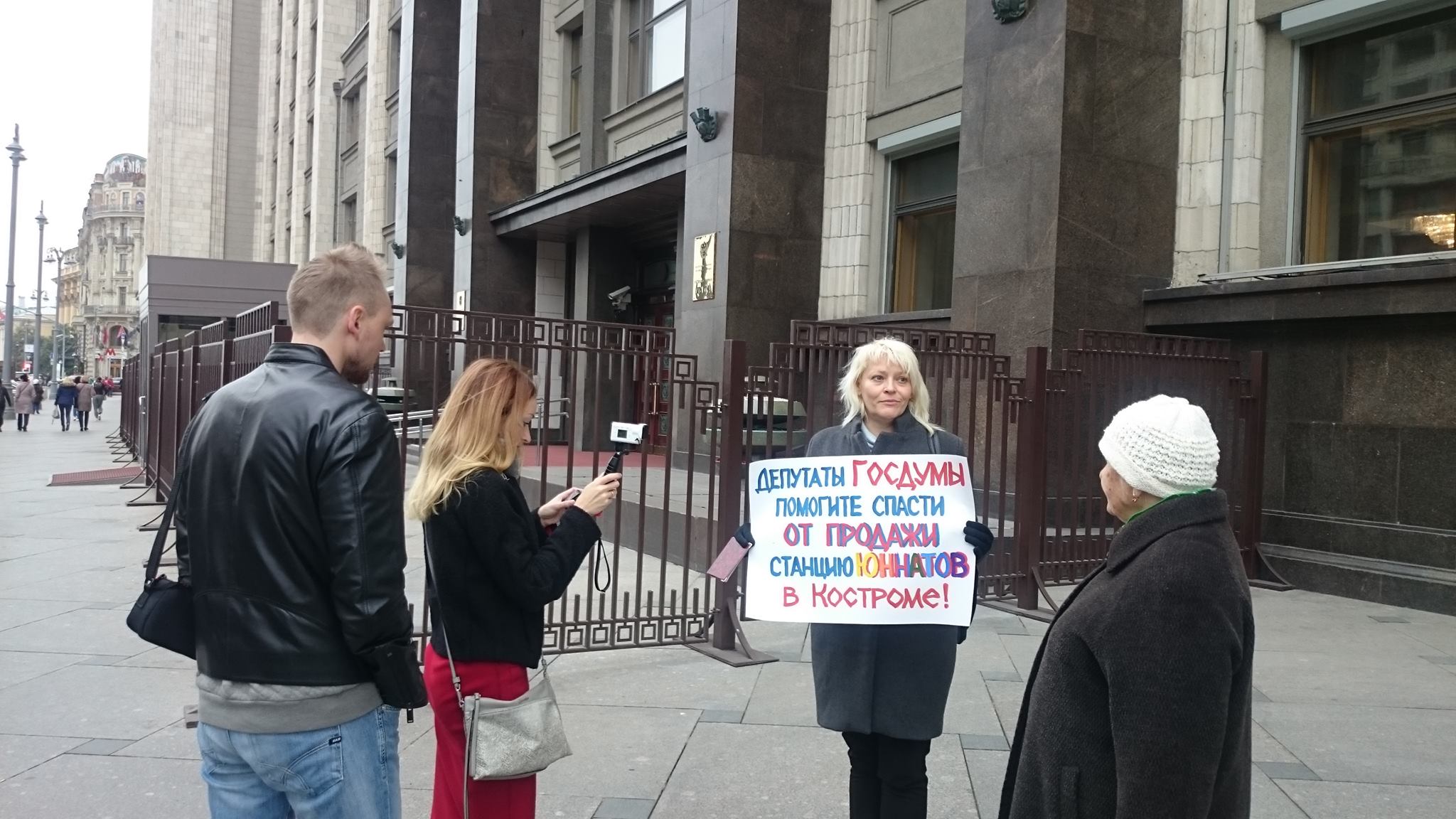 Активистка Наталья Цветкова и депутат гордумы Костромы от КПРФ Лариса Гусарова вышли на одиночные пикеты в Москве у здания Государственной думы и на Манежной площади. Они протестовали против продажи здания костромской городской станции юннатов. Об этом Цветкова 29 сентября рассказала в своем Facebook.