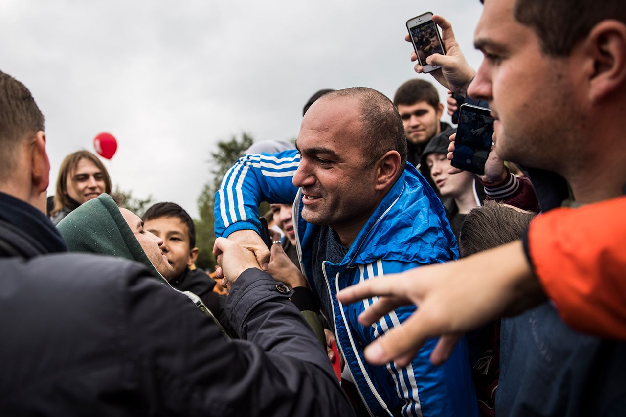 Наконец, последняя часть митинга — селфи Навального с его участниками. Этот процесс носит характер культа. Когда некуда торопиться, он может растянуться и на час — кандидат не отказывает никому. Но в этот раз надо было возвращаться в аэропорт.
