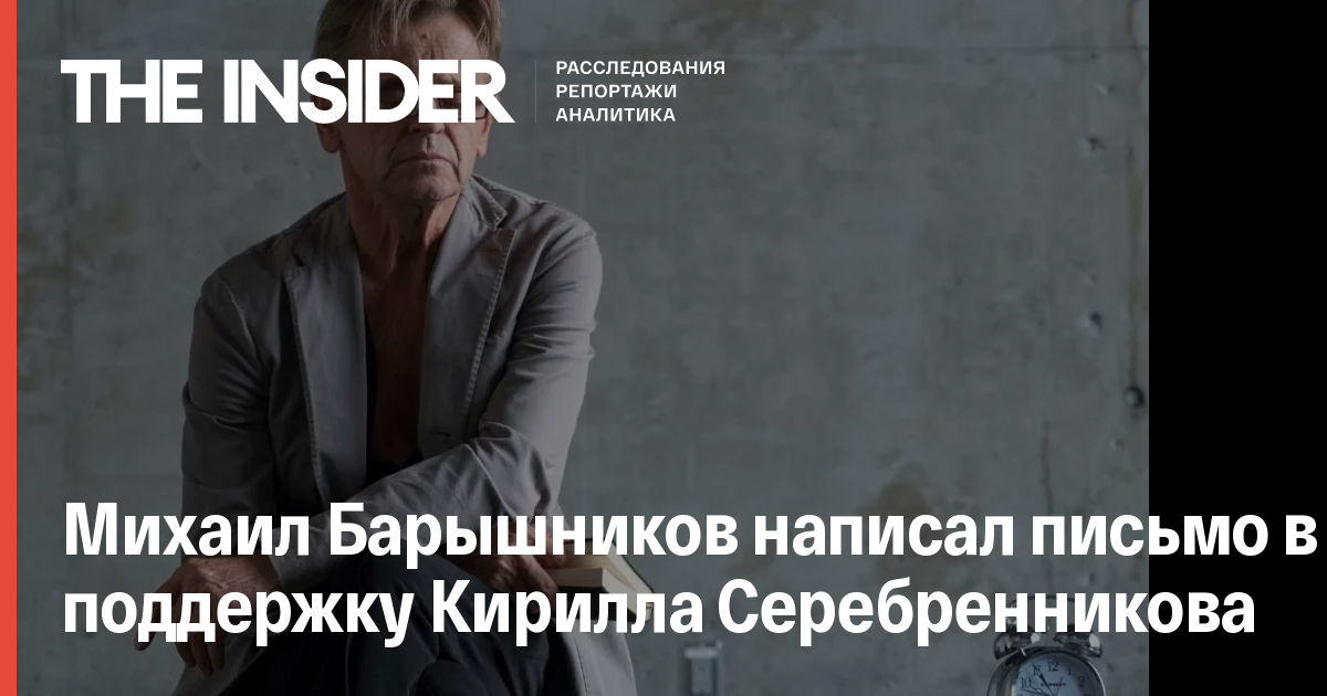 Балетмейстер Михаил Барышников написал письмо в поддержку Кирилла Серебренникова, который находится под домашним арестом. Письмо Барышникова опубликовал писатель Григорий Чхартишвили (Борис Акунин).