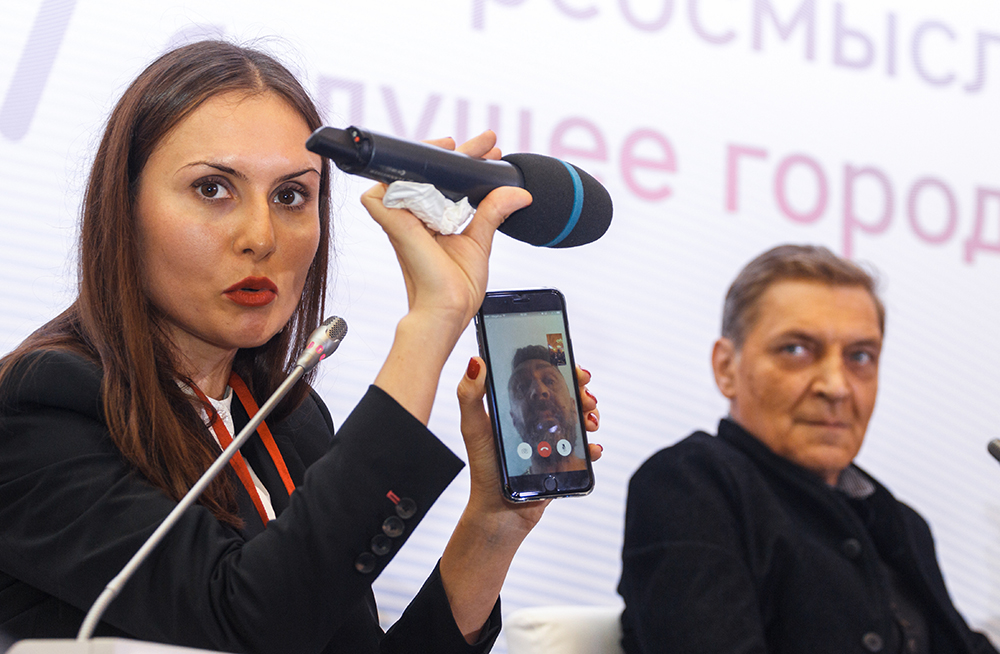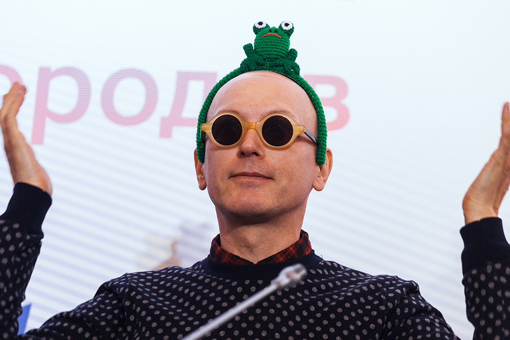И теперь я хочу задать вопрос тем людям, которые занимаются планировкой городской среды: вы понимаете, о чем мы? О каком оружии мы с вами рассуждаем? Искусство в городской среде — это невероятно мощное оружие. И даже такие тривиальные проявления, как символ в архитектуре, уже меняют наше сознание. Вы должны быть очень осторожны. Я совершенно согласен и приветствую дискуссию, которую организовала Ольга, и с ее руководством «Лахта Центра», потому что они принимают вызов, каким являет себя этот проект. Им нужно создать живую среду, в которой они могут нормально функционировать, в которой они могут иметь будущее, чтобы в нем не было конфликта с исторической частью города. (На проекции появляется Сергей Шнуров). Там уже Сергей? Пожалуйста, я могу прерваться. Мы Серегу все любим.