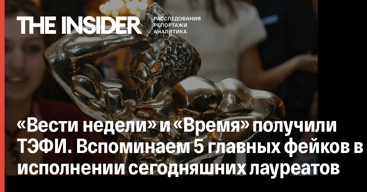 «Вести недели» и «Время» получили премии ТЭФИ как лучшая информационно-аналитическая и лучшая новостная программы. The Insider поздравляет победителей и вспоминает некоторые выдающиеся выпуски этих программ, выходившие в эфире Первого канала и «России». Все они в разное время появлялись в рубрике "Антифейк".