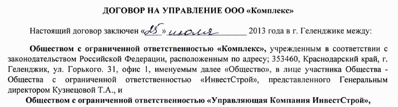 Однако в распоряжении «Собеседника» есть копия договора от 25 июля 2013 года. Согласно ему «единоличным исполнительным органом» «Комплекса» на 5 лет был назначен не Ларин, а именно «ИнвестСтрой».