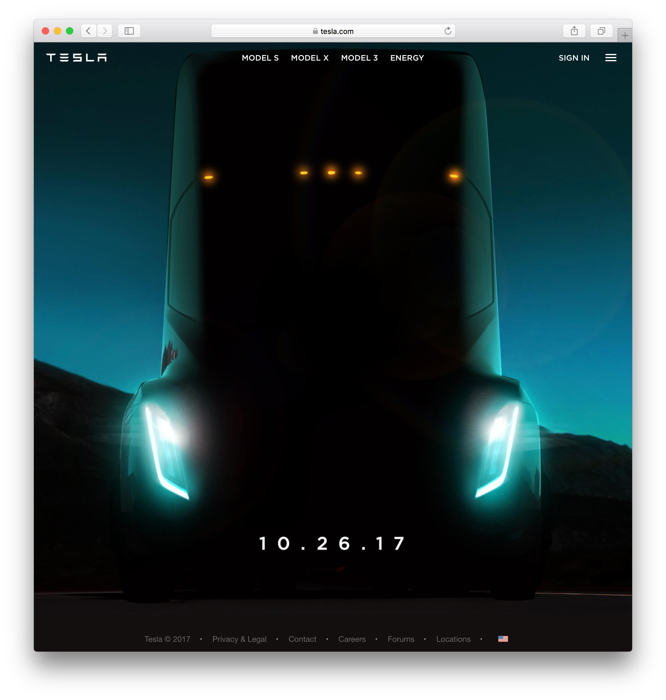 Tesla собирается представить свой грузовик 26 октября 2017 года. Как и другие машины компании, грузовик будет работать на электродвигателях.