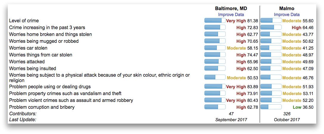 Pervyi Kanal also presented Fridhem, a neighborhood in Malmö, as a particularly dangerous area, though local sources told The Insider that it’s actually a generally peaceful place. According to the crowd-sourced global database Numbeo, Malmö’s overall level of crime is “moderate,” scoring it significantly higher than American metropolises like Baltimore and Chicago.