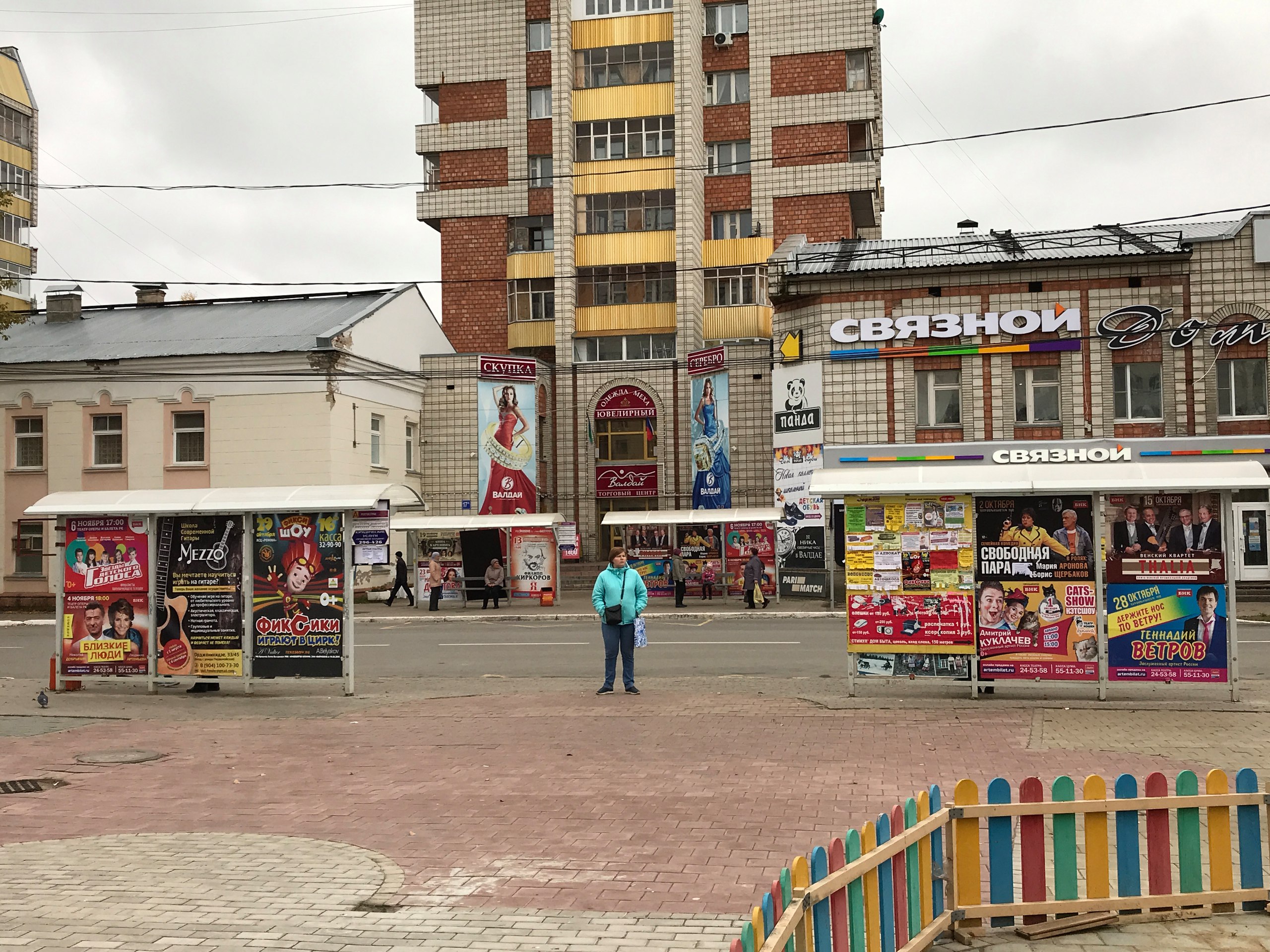 И примеров таких полно. Эти колхозные рекламные конструкции надо демонтировать, потому что порядок в этой сфере не навести, как нельзя навести порядок в куче мусора, где кроме мусора больше ничего нет. Есть большая иллюзия, что эти раскладушки сильно привлекают клиентов и очень нужны для бизнеса. Это не так. Одна история, когда бизнес расположен во дворе, а реклама на улице, но вот эти завлекухи на тротуарах и у входов - чушь, которую надо выбросить. Тротуары - муниципальная собственность и надо ее приводить в порядок. Но раскладушки еще не главная беда. Куда большим злом являются наши остановки общественного транспорта. Посмотрите на них: