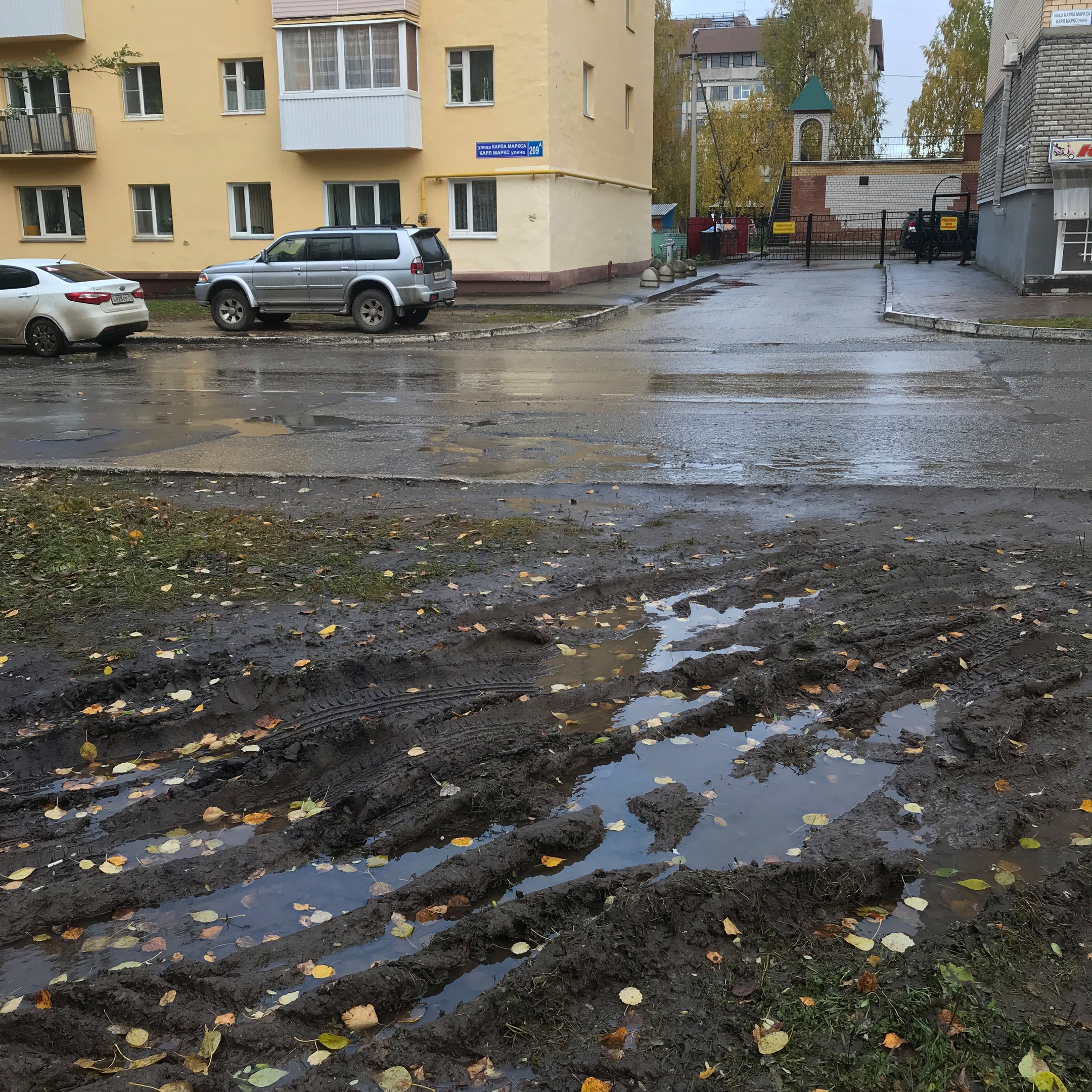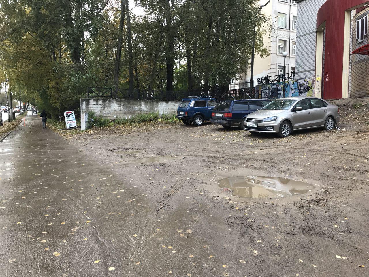А тут результаты работ сразу трех мэров. Мусорный бак на колесиках и заборчики от Зенищева, заросший газон от Поздеева и ограничительные столбики от Козлова:
