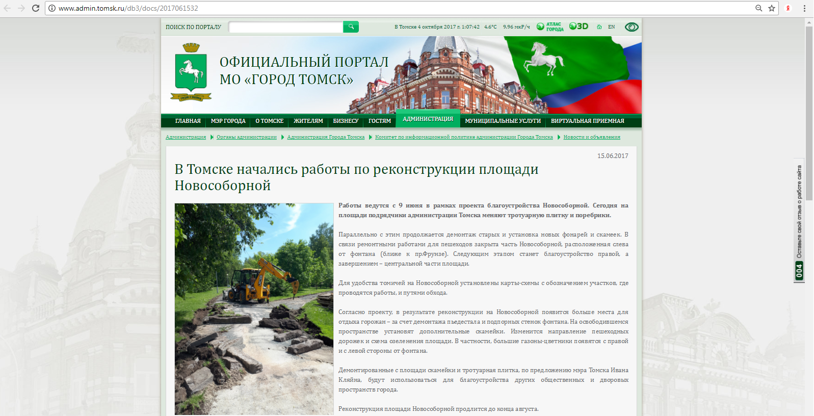 Мэрия Томска отказывается признавать факт реконструкции городской площади, из-за которой на ней уже четыре месяца не согласовывают акции. Городские общественные деятели подчеркивают, что мэрия не провела общественные слушания и обсуждение дизайнерских проектов.