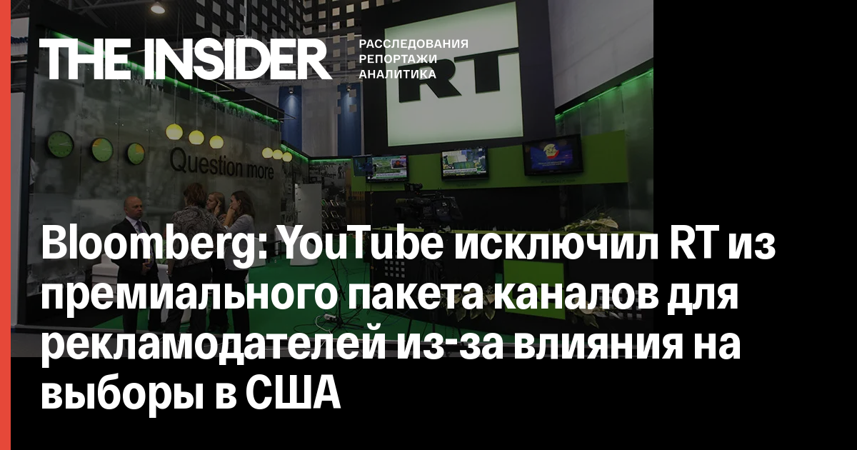 Bloomberg: YouTube исключил RT из премиального пакета каналов для рекламодателей из-за влияния на выборы в США