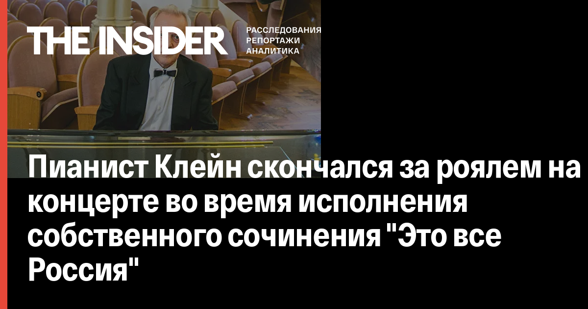 «Пианист Клейн скончался во время концерта в органном зале прямо за роялем, исполняя свое собственное сочинение - джазовую фантазию «Это все Россия«, в которую входят фрагменты нескольких известных песен», - уточнили в учреждении.