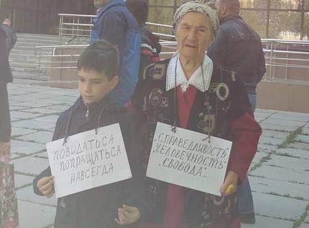 Мать и сын Муслима Алиева у верховного суда Крыма, 05.10.2017. Фото с ФБ-страницы "Крымская солидарность"