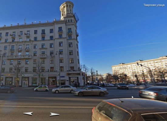 4) С помощью общего вида здания Тверская, д. 16 (используя вид «Панорама» сервиса Яндекс-карты) можно более точно определить положение интересующей нас тени, см. Приложение 5.