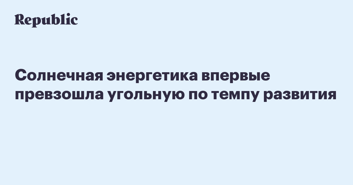 Солнечная энергетика впервые превзошла угольную по темпу развития
