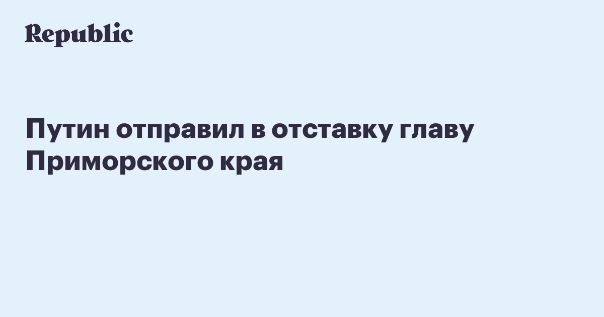 Президент России Владимир Путин отправил в отставку губернатора Приморского края Владимира Миклушевского. Об этом сказано на сайте президента.