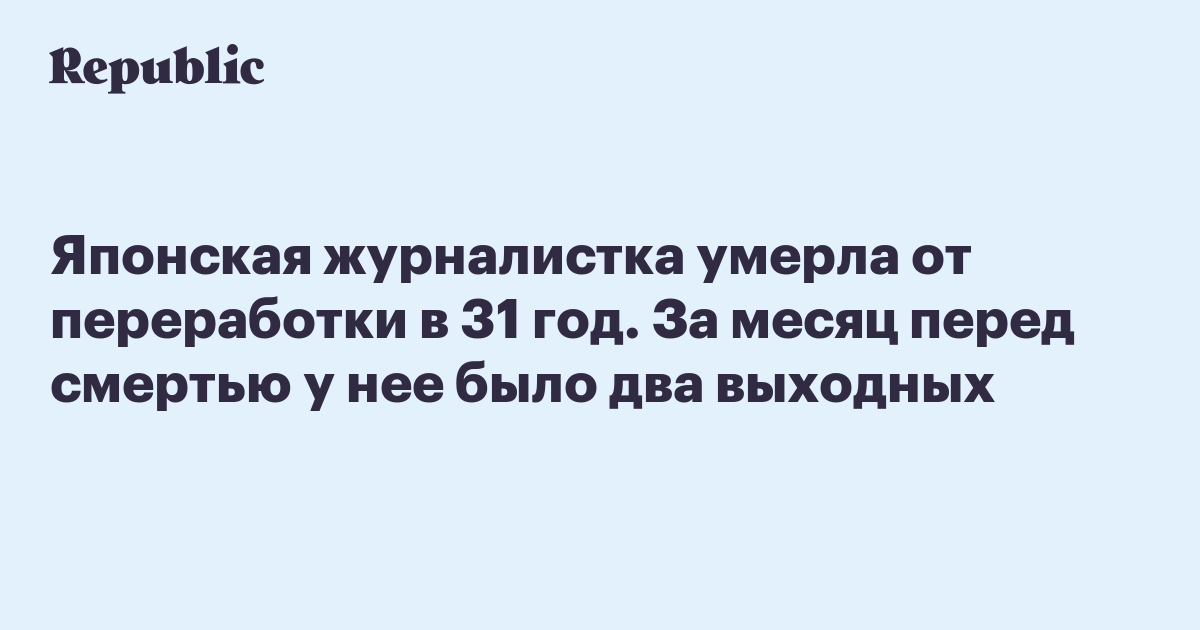 Японская журналистка умерла от переработки в 31 год. За месяц перед смертью у нее было два выходных