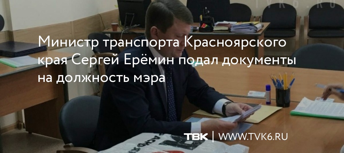 Министр транспорта Красноярского края Сергей Ерёмин подал документы на должность мэра