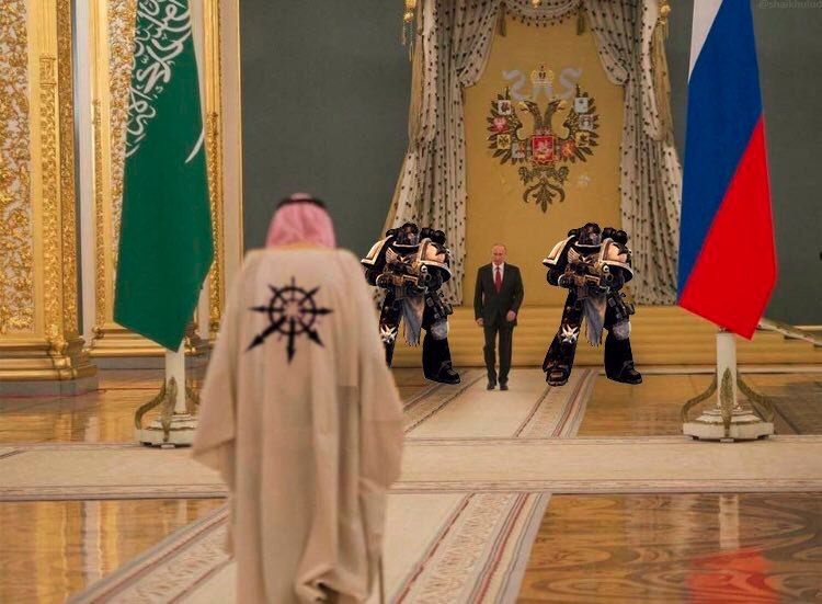 На официальной встрече с Путиным король Салман был с тростью. И один кадр с церемонии особенно запомнился пользователям соцсетей — из фотографии сделали несколько фотожаб.