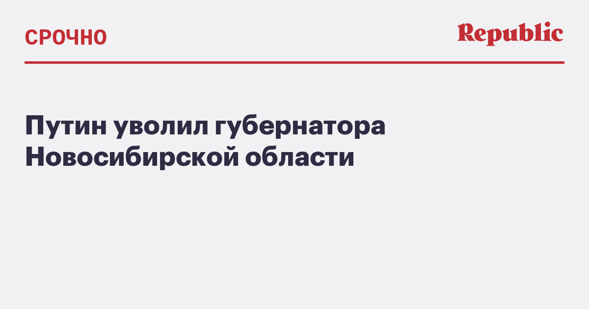 Президент России Владимир Путин принял отставку губернатора Новосибирской области Владимира Городецкого. Об этом говорится в сообщении Кремля.